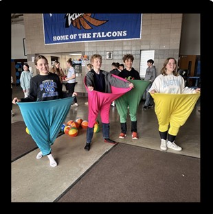 In this activity people must get the beach balls into their team’s Leadership pants. For pep Rallys you could randomly toss our the beach balls to the students in the stands and they could be teams by their sections. I have even done it where the person wearing the pants was blindfolded! They had to focus on the voices of their teammates. here.